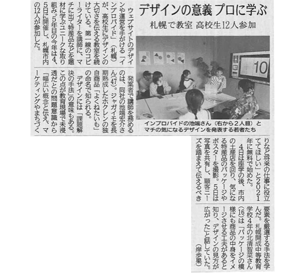 2025.08.05 NEWS|MEDIA 北海道新聞に池端宏介が講師を務める高校生向けインターンシップ「デザインって何?」教室が紹介されました。北海道新聞デジタルの記事はこちら高校生の「デザインって何?」教室について詳しくはこちら2025年は開催終了しました。2026年の開催情報は随時WEBサイトでお知らせします。 Back to INDEX